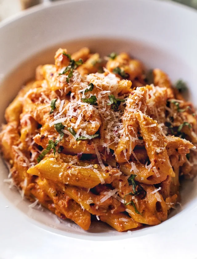 Fresh parmesan cheese and red crushed pepper are added to this penne alla vodka with shrimp before being tossed with a tomato cream sauce. Shrimp with penne. The real heavenly union that you can prepare the creamiest and tastiest penne alla vodka with shrimp in just 30 minutes! You can use 1/2 cup of heavy cream instead of 1 cup if you like a lighter sauce. However, I cannot comprehend why anyone would refuse a bowl of creamy penne alla vodka.